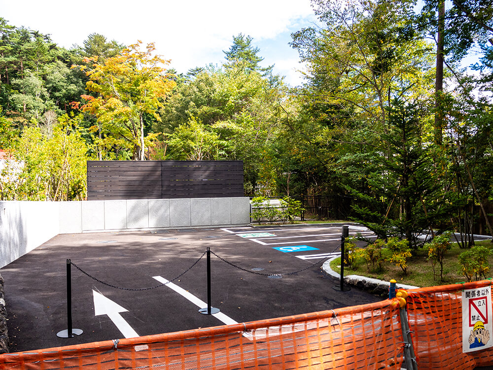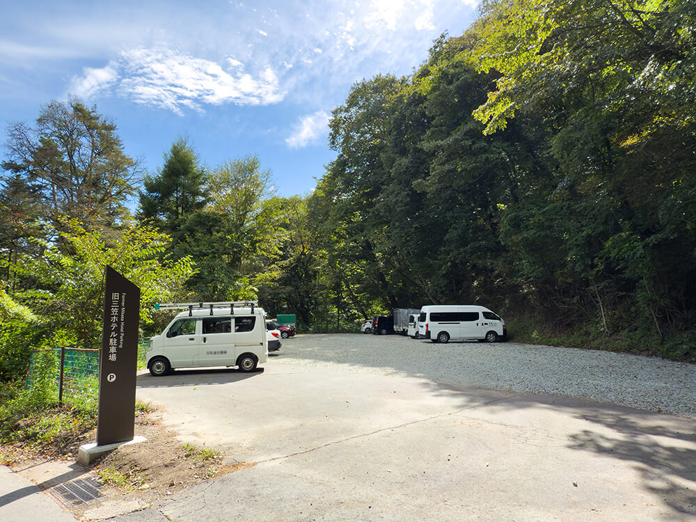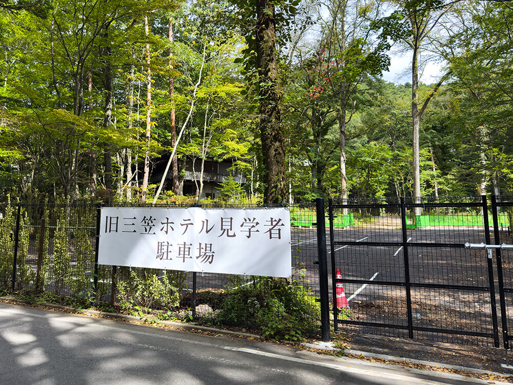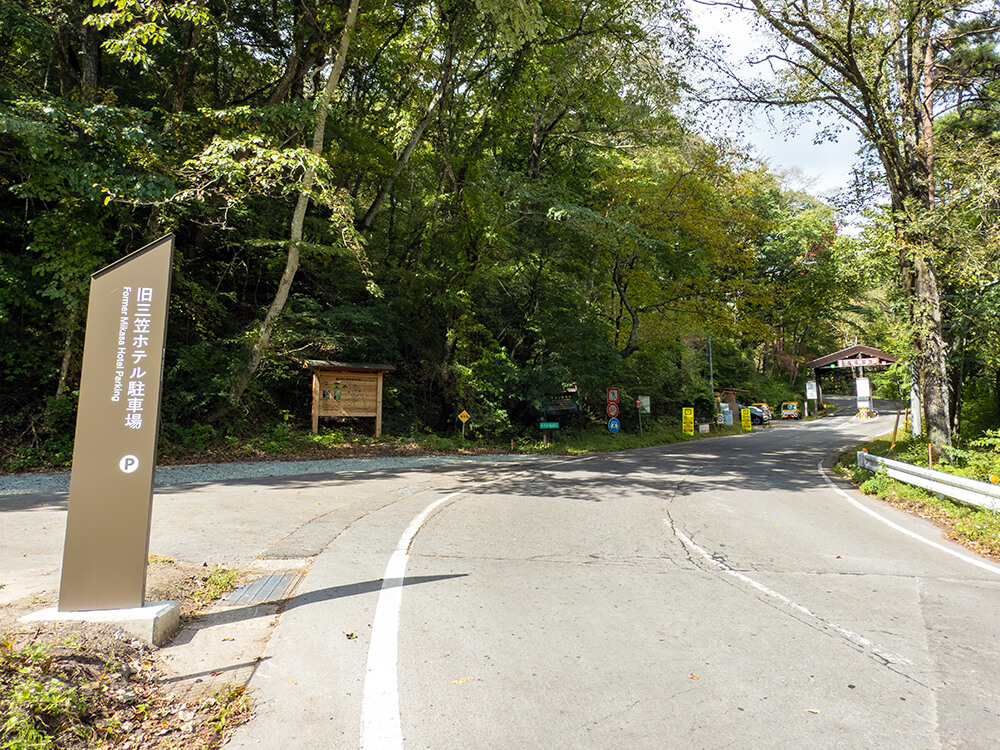 それとは別に、ホテルから三笠通りを230mほど登ったところ、白糸ハイウェイ料金所の近くにも駐車場があります。