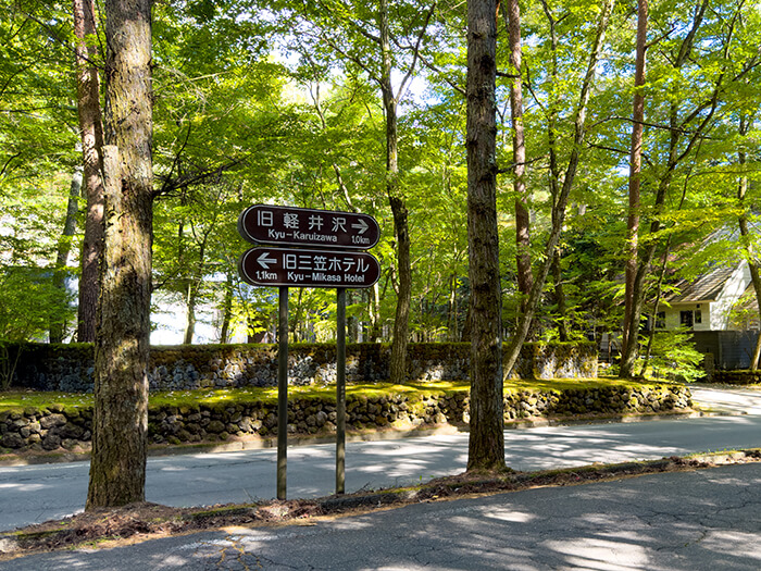 ホテル前には白糸の滝行きのバス停もあるので、バス利用も便利ですよ。
