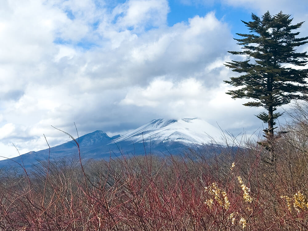 ここに着く前は雲で隠れていた浅間山も、雲が一瞬切れて、美しい姿を見せてくれました。