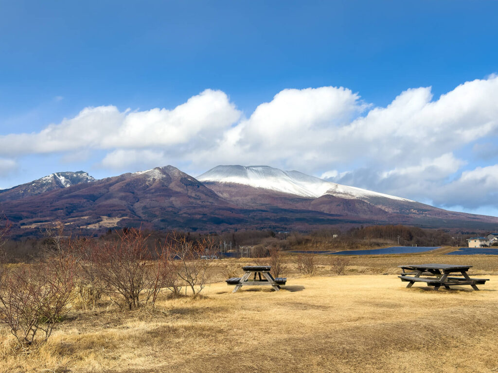 お気に入りの絶景ポイントに立ち寄ると、この日はいつも以上に美しい浅間連山の姿が。