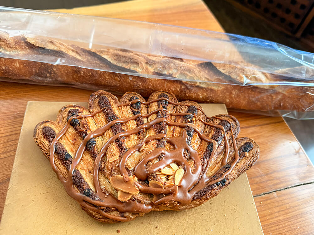 「ベーカリー&レストラン 沢村 旧軽井沢」で、明日の楽しみのために大好物のバゲットと、チョコチップとアーモンドのザクザクしたデニッシュを買いました。