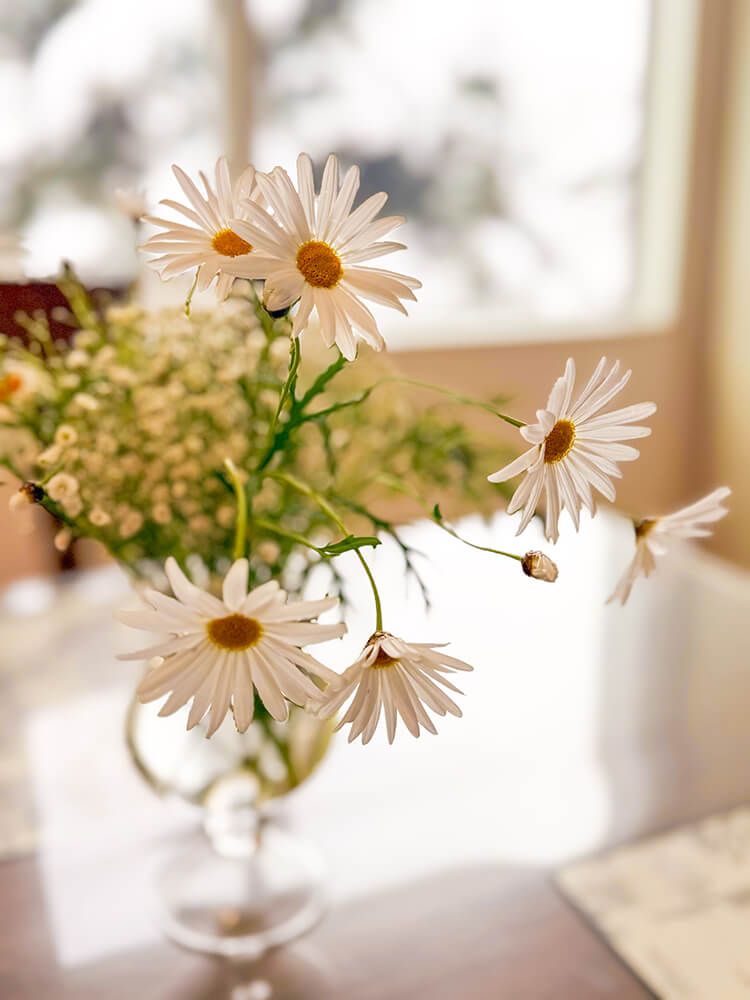 テーブルにあしらわれた花々も、外の白さに映えて、いっそう可憐に見えました。