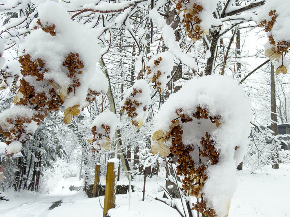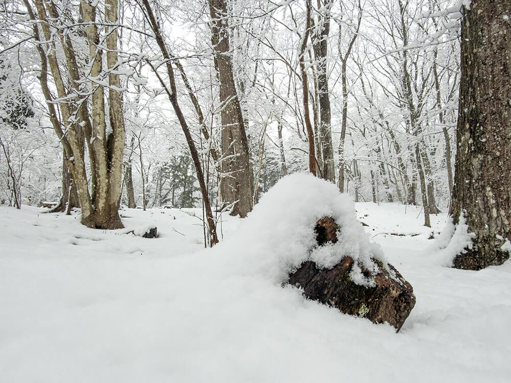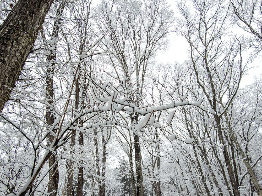 真冬のきりりとした雪とは違い、木々を丸く包み込むこの日の雪はどこかやわらか。