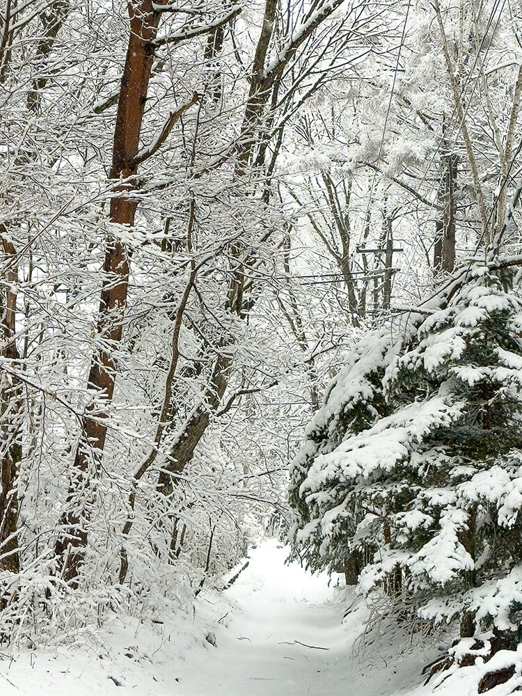 どこを見ても、白く縁取られた木立が美しくて、子どものようにウキウキと足取りが軽くなります。