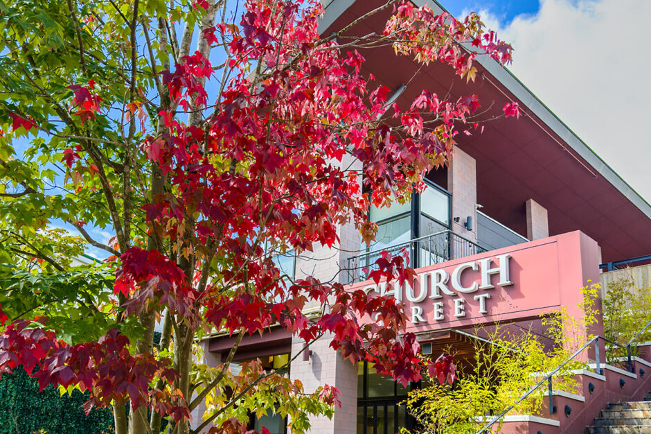 旧軽銀座と聖パウロ教会をつなぐ通りに建つ、開放的なモール「チャーチストリート軽井沢」。