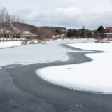 2月中旬。今年は雪が少ないとはいえ、山には雪が積もっています。