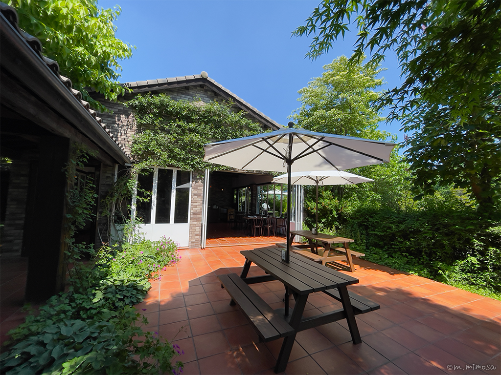晴れた日には、テラス席も気持ちがよくて、まるでピーターラビットの世界に迷い込んだような可愛らしさ。