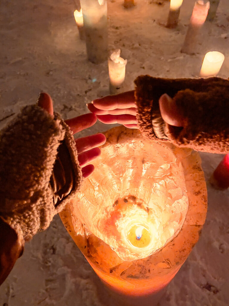 冬の特定日には、氷と光が織りなすライトアップが行われます。